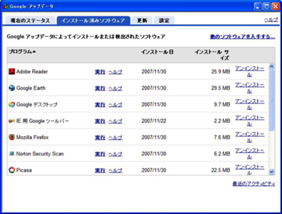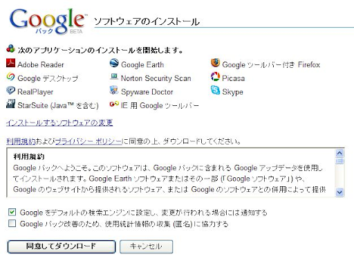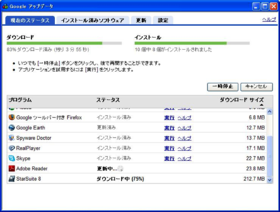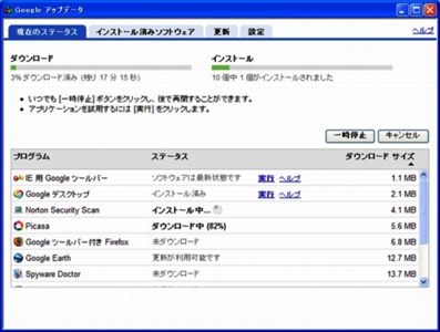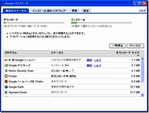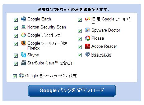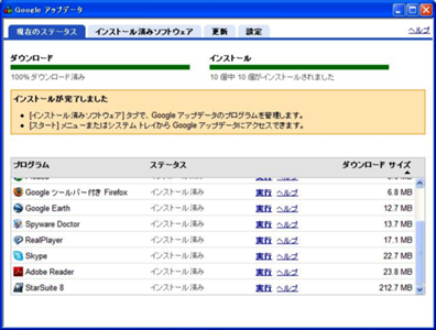 Googleパックは現在11種類あります。必要に応じて好きなだけダウンロード出来ますし、後からでも簡単に追加ができる仕組みになっております。ここでは全てのソフトをインストールして実際に使って見る事にします。