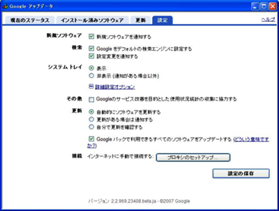 なお「□Googleをホームページに設定」にチェックを入れると、これまでYahoo!であったのが、Googleになってしまうので、チェックを外して置いた方が良いでしょう。