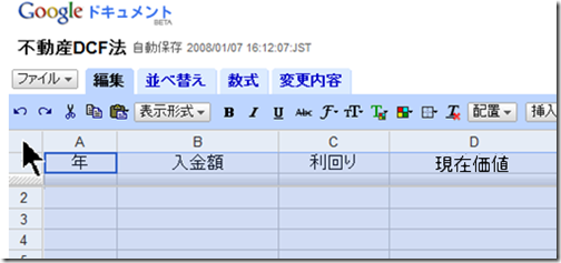 オンライン版のエクセルですが、まだ基本的な機能しかありません。どの程度のスプレッドシートが作れるのか試して見ようと思います。