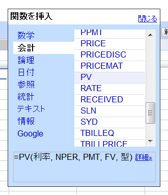 右側にお馴染みの関数がでますが、ここではPVを使いたいので「その他」をクリックします。